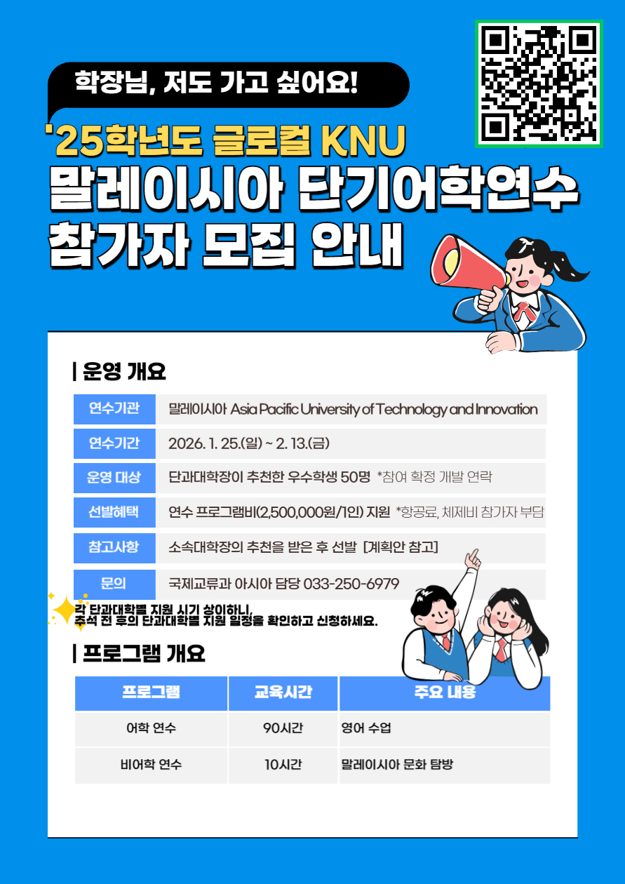 ❍ (사업명) 2025학년도 글로컬 KNU 말레이시아 단기어학연수